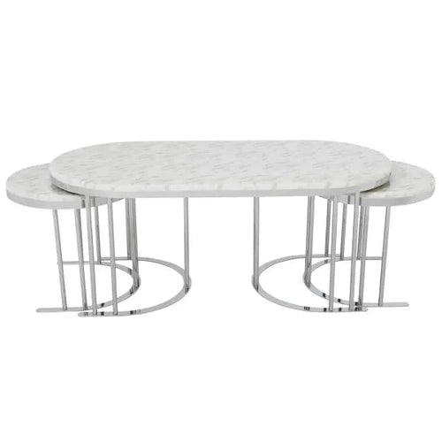 Elevate your living room with this versatile 2 in 1 coffee table featuring sleek silver legs and a crisp white top. Perfect for modern spaces.