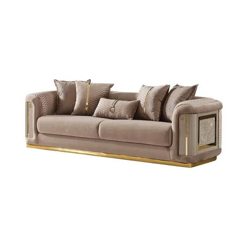 Add a touch of elegance to your living room with this beautiful beige loveseat. The perfect combination of style and comfort, this loveseat is a must-have for any modern home.