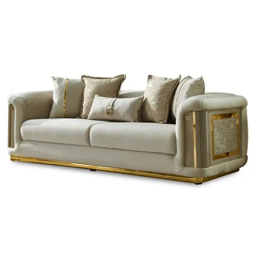 Bring elegance and comfort to your living room with this stationary sofa. The cream color adds a touch of sophistication to any space.