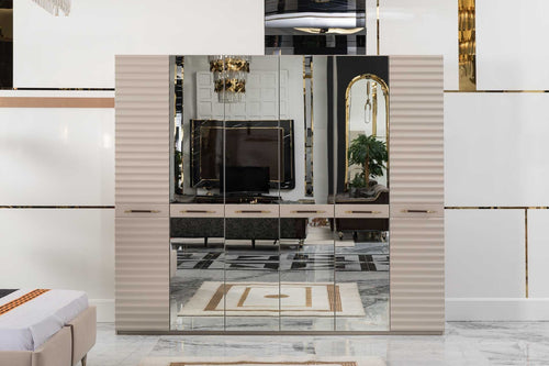 The Eyfel Wardrobe with Mirror combines luxurious design and expert craftsmanship to elevate any bedroom. Featuring a spacious interior for organized storage and a sleek integrated mirror, it enhances both functionality and style. Crafted from premium materials, this wardrobe offers a sophisticated focal point that blends practicality with timeless elegance.