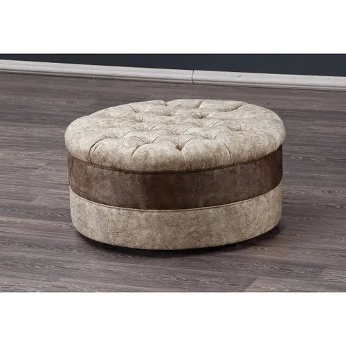 Enhance the look of your living room with this elegant beige-brown ottoman from Idea. Made with high-quality materials, this ottoman is both stylish and functional, providing extra seating or a footrest.