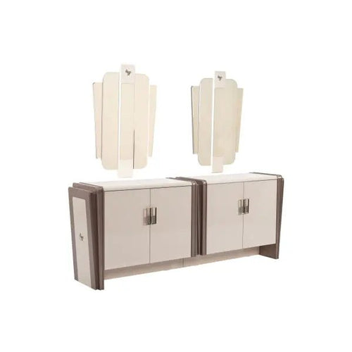 The Nirvana Buffet With Mirror combines superior craftsmanship with luxurious design, creating a stunning and functional addition to your dining or living area. Crafted from high-quality materials, this piece offers ample storage while the integrated mirror enhances light and space, adding elegance and practicality to your home. Perfect for those who appreciate refined furniture that balances beauty and utility.