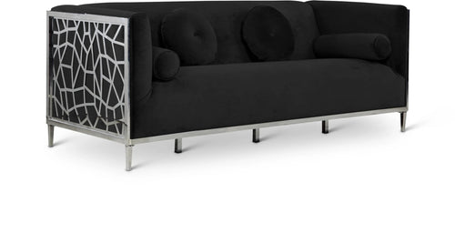 Catch the eyes of all who step foot in your home with this bold Opal velvet sofa. Its stainless steel patterned design creates a contemporary flair against its plush, velvet upholstery, creating a home accent piece that is both comfy and stylish. Its roomy design offers ample room to kick back and relax after a long day, while its stocky shape adds a daring touch to your decor.