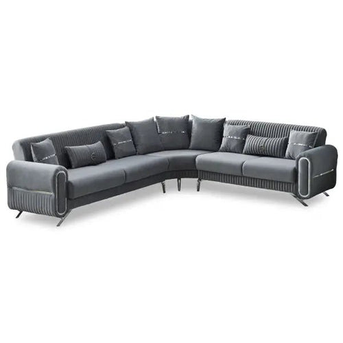 Add a touch of elegance and versatility to your living space with our Royal Convertible Sectional in Grey. This sectional sofa features a stylish design that easily transforms into a bed, making it perfect for hosting guests or lounging in style.