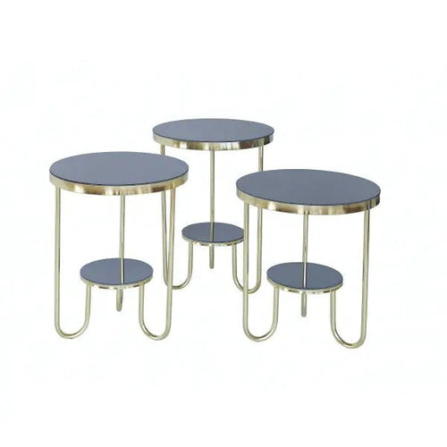 Add a touch of elegance to your living space with the Sasa Nesting Table. Featuring stunning gold legs and a sleek black top, this table is perfect for showcasing your favorite decor pieces.