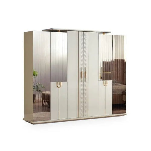 Add style and functionality to your bedroom with the Valence 6 Doors Wardrobe. This spacious wardrobe features six doors for ample storage space, perfect for organizing your clothing and accessories. The sleek design and neutral color make it a versatile addition to any bedroom decor.